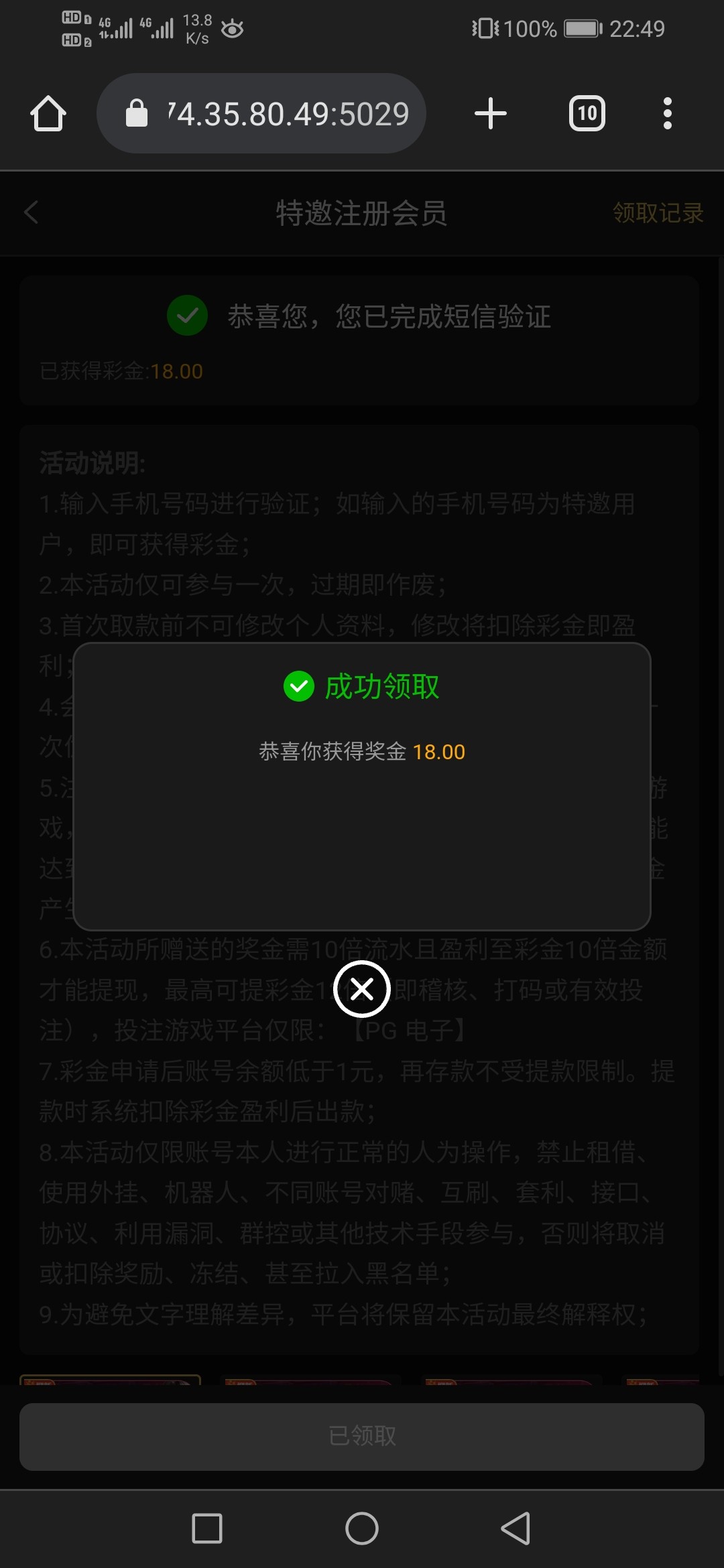 优惠→新人→查特邀送18