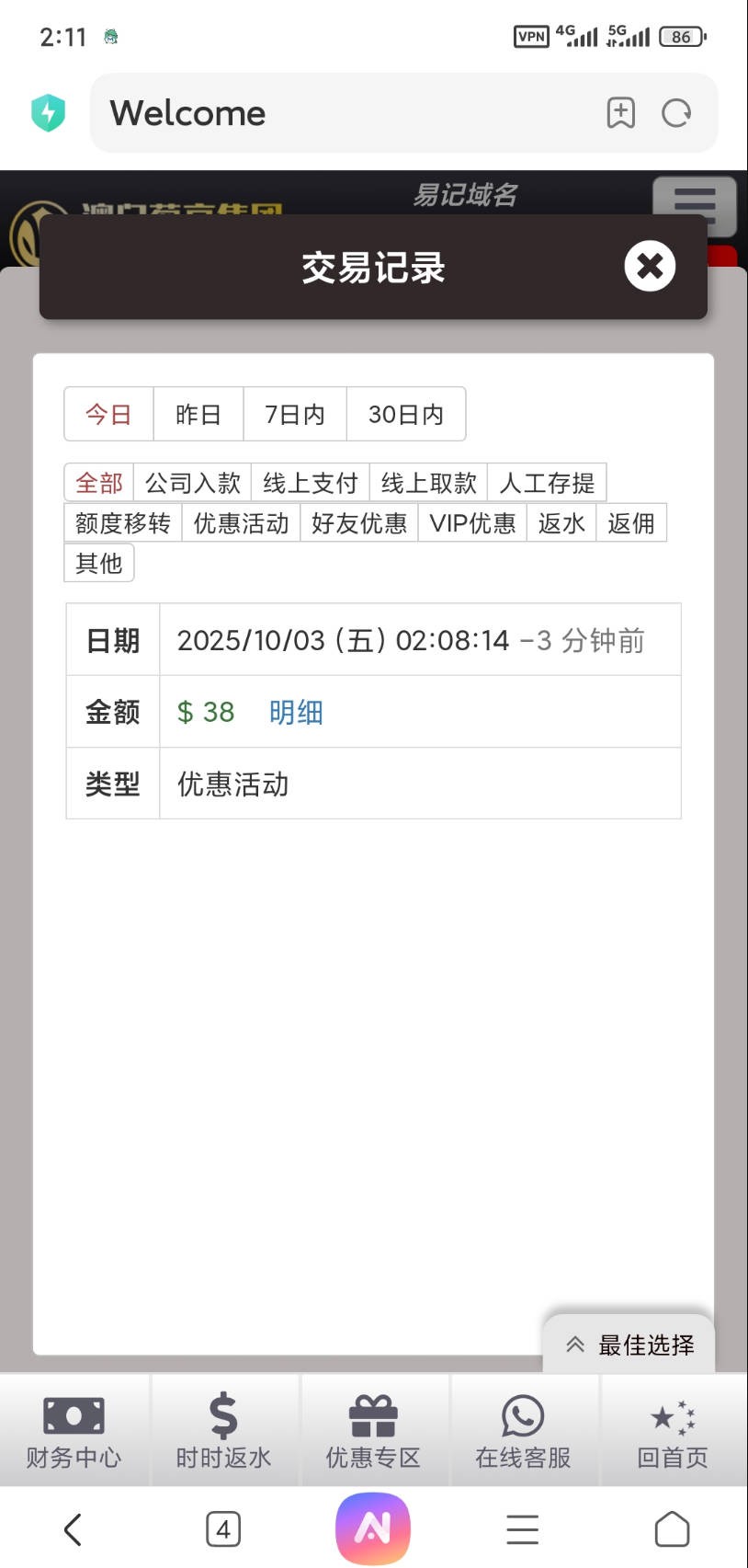 出款情况:自测