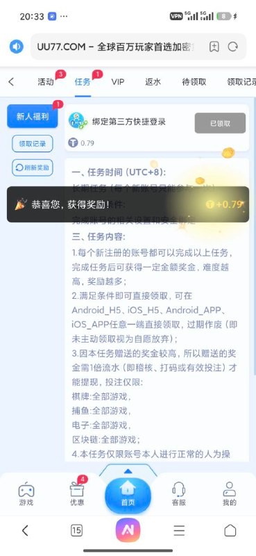 uu77 注册送 注册绑定飞机任务领取 uu77.com