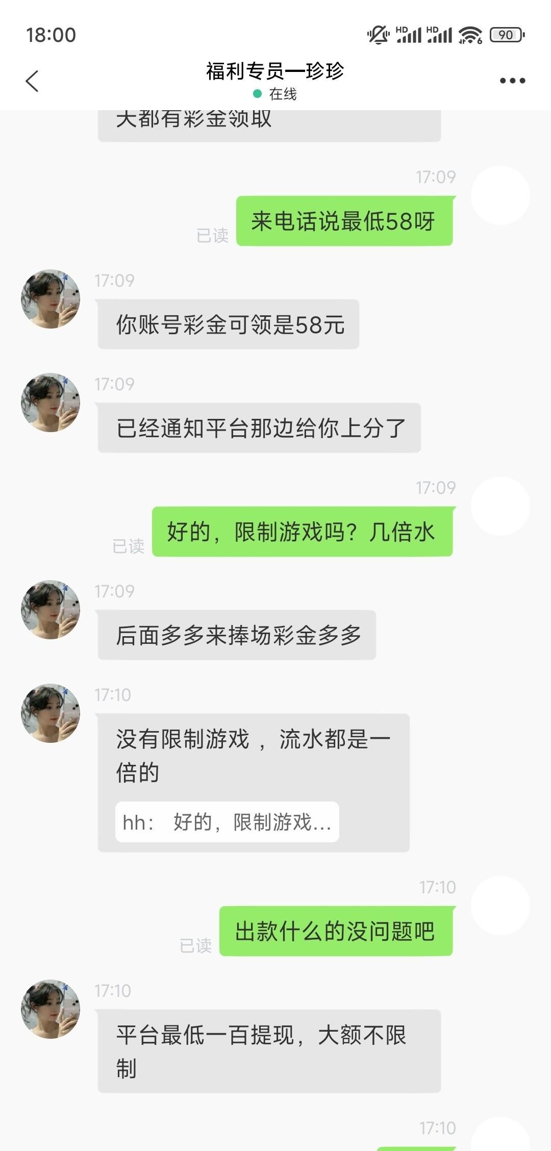 接到的电话说最低送58 没接到的去找客服碰瓷 他会给你发聊天软件让你加专员