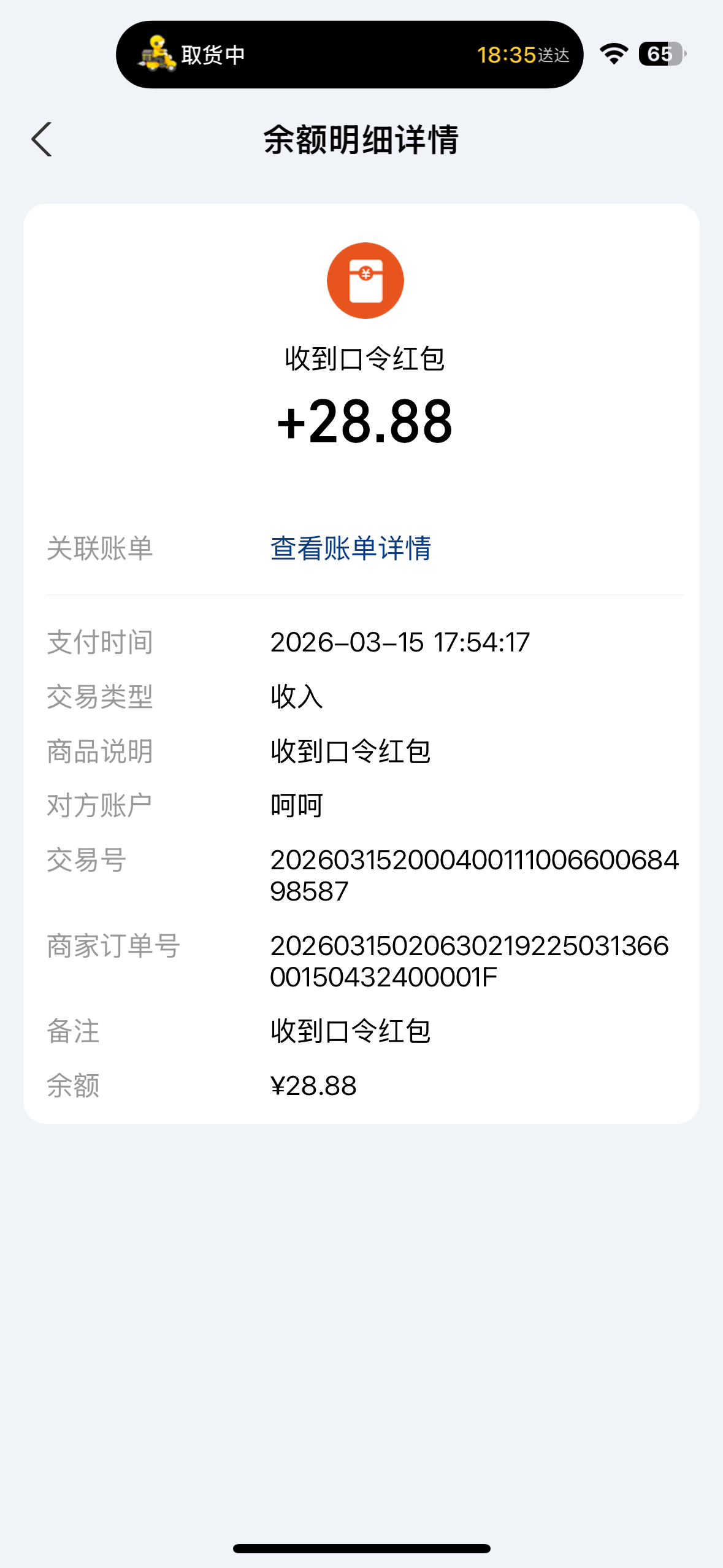 猪脚饭到账,感谢小陈